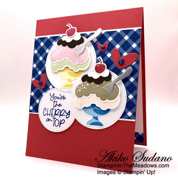 Good Morning! Tomorrow is Independence Day and while I did not make a patriotic card to celebrate, I used the wonderful Stampin’ Up! Share A Milkshake photopolymer stamp set and dies to make a card with ice cream – the perfect thing for a hot 4th of July afternoon! You can find the supplies I used at the bottom of my post along with the sizes of cardstock used.