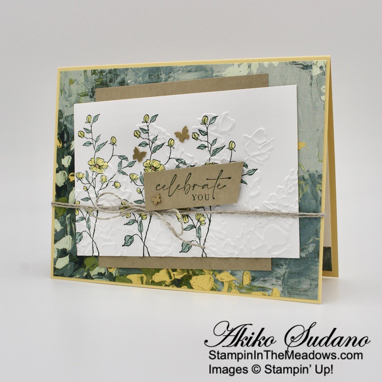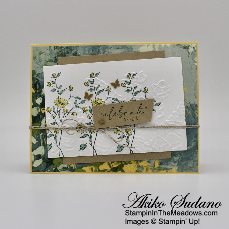 The stamped flowers from the Stampin’ Up! Dainty Delight stamp set are so delicate and look so pretty when stamped and colored. These yellow flowers remind me of a country stroll on a sunny Summer day – hopefully those days are not too far away!