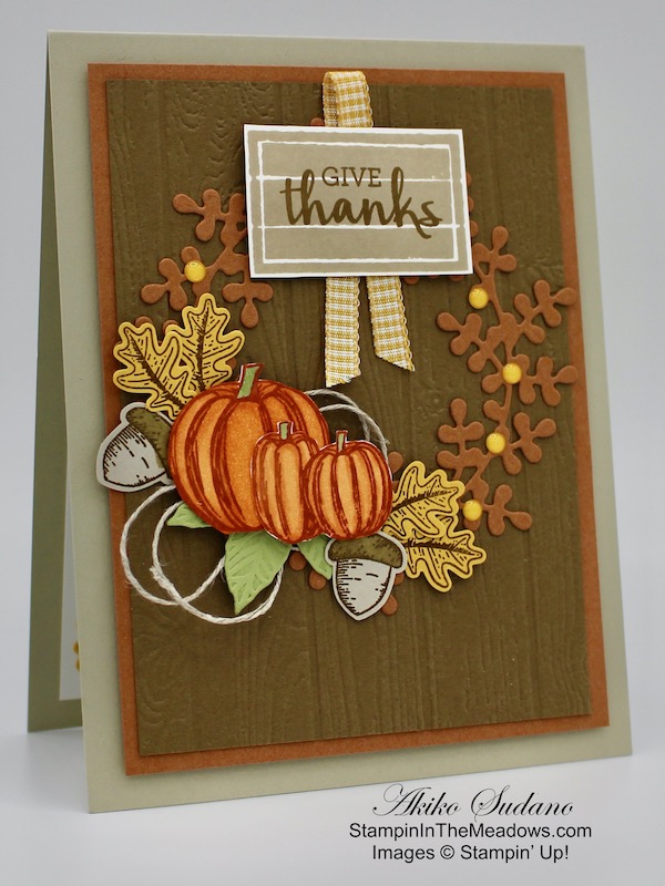 The Stampin’ Up! Beautiful Autumn bundle is so versatile and it has great sentiments. The leaves and acorn could have easily been stamped in any color palette and then punched – but it’s nice to have beautiful DSP that can be die cut or punched like I did here. And the images in this stamp set are so beautiful in a clean and simple card with a textured Whisper White or Very Vanilla background. And the bonus is that they can be made fairly quickly with stunning results.