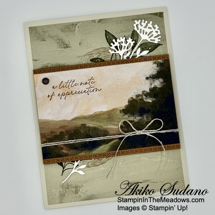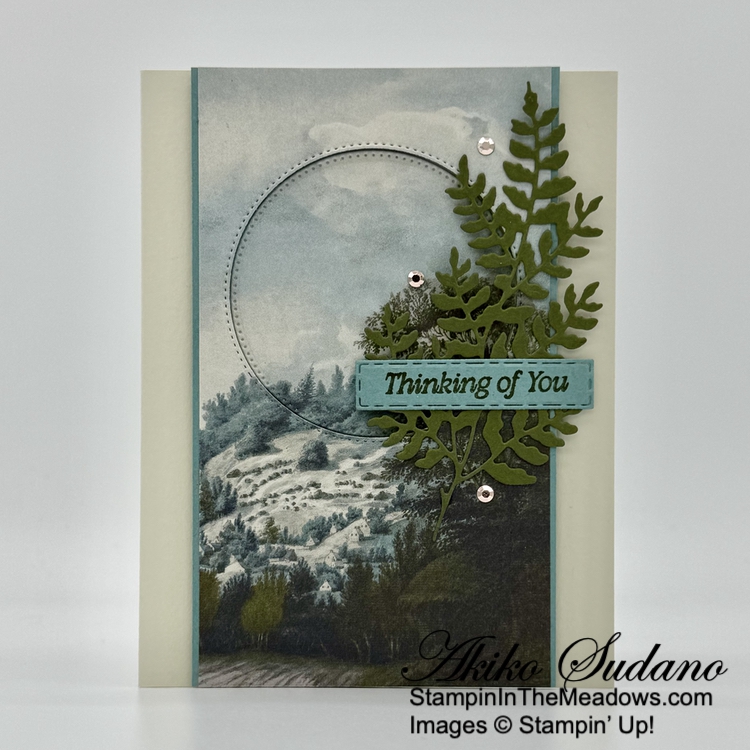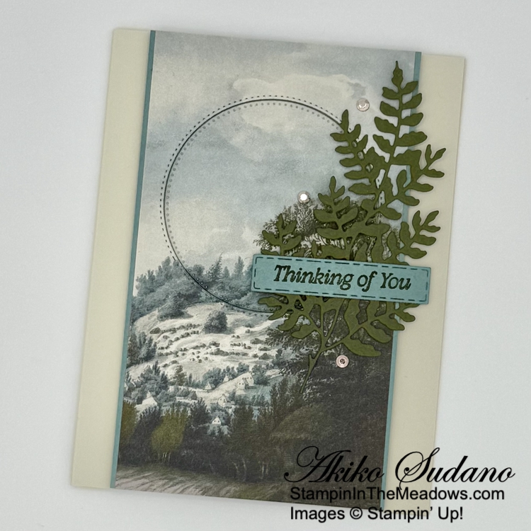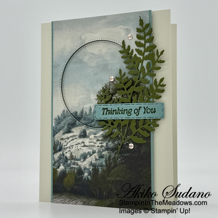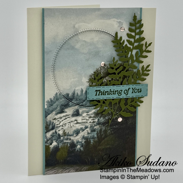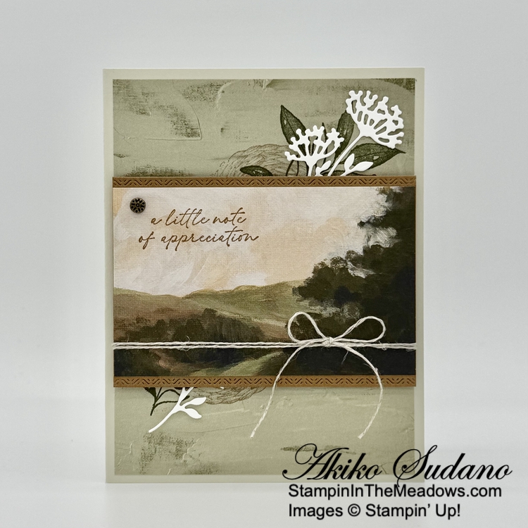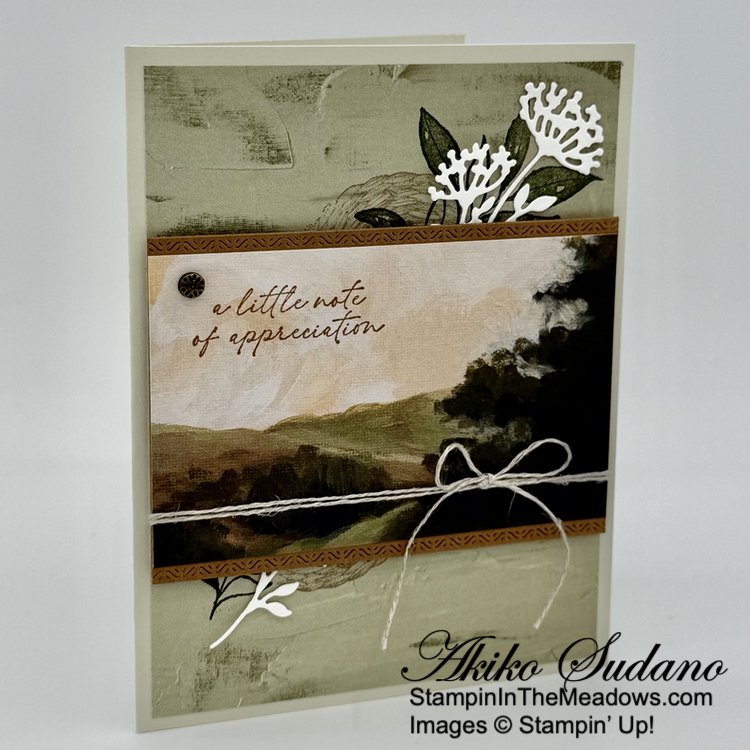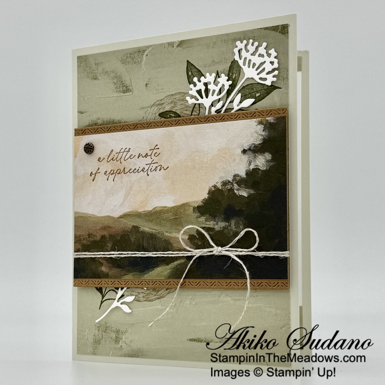 Good Morning! Today’s Thank You card was inspired by the pretty box on page 52 of the 2025-2026 Annual Catalog using the Stampin’ Up! Beautiful Motifs bundle. But I wanted to use the new Peaceful Garden designer series paper and make a layered card. You can find the card stock cuts along with supplies at the bottom of my post.