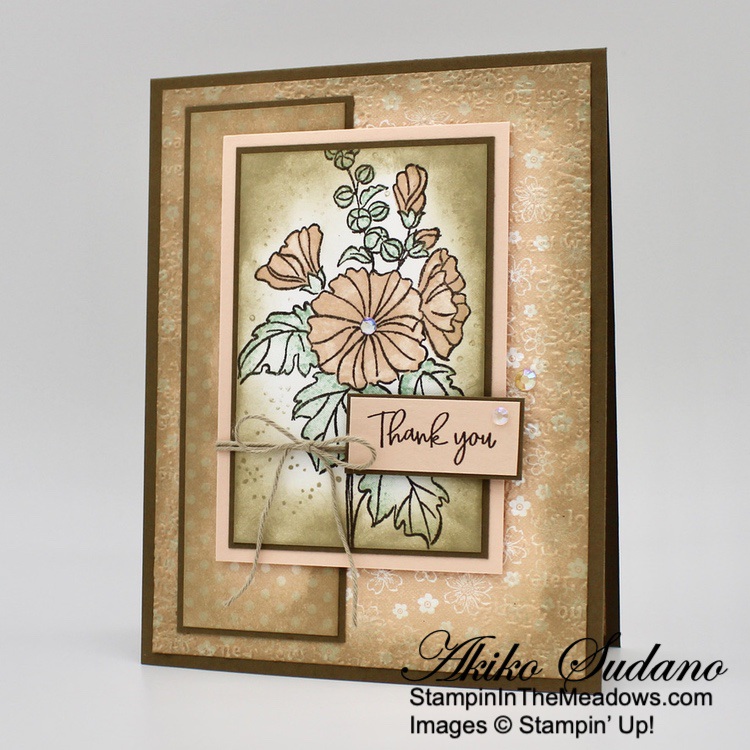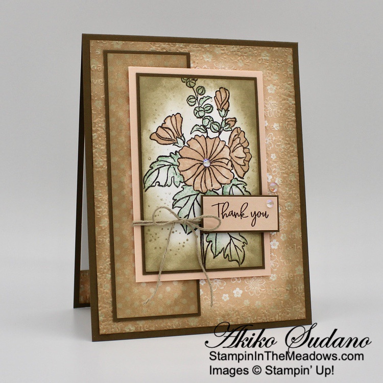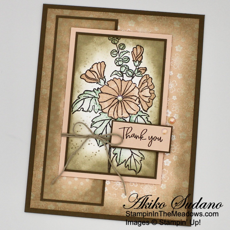 Good Morning! The Stampin’ Up! Beautifully Happy photopolymer stamp set is a pretty two step floral stamp set with lovely sentiments and it’s one of the items that you can choose for free with a $100 order (before shipping and handling) during Sale-A-Bration. For today’s card, I wanted to make a garden of these pretty flowers, so I used the masking technique to stamp multiple images. You can find the supplies I used at the bottom of my post along with the sizes of cardstock used.