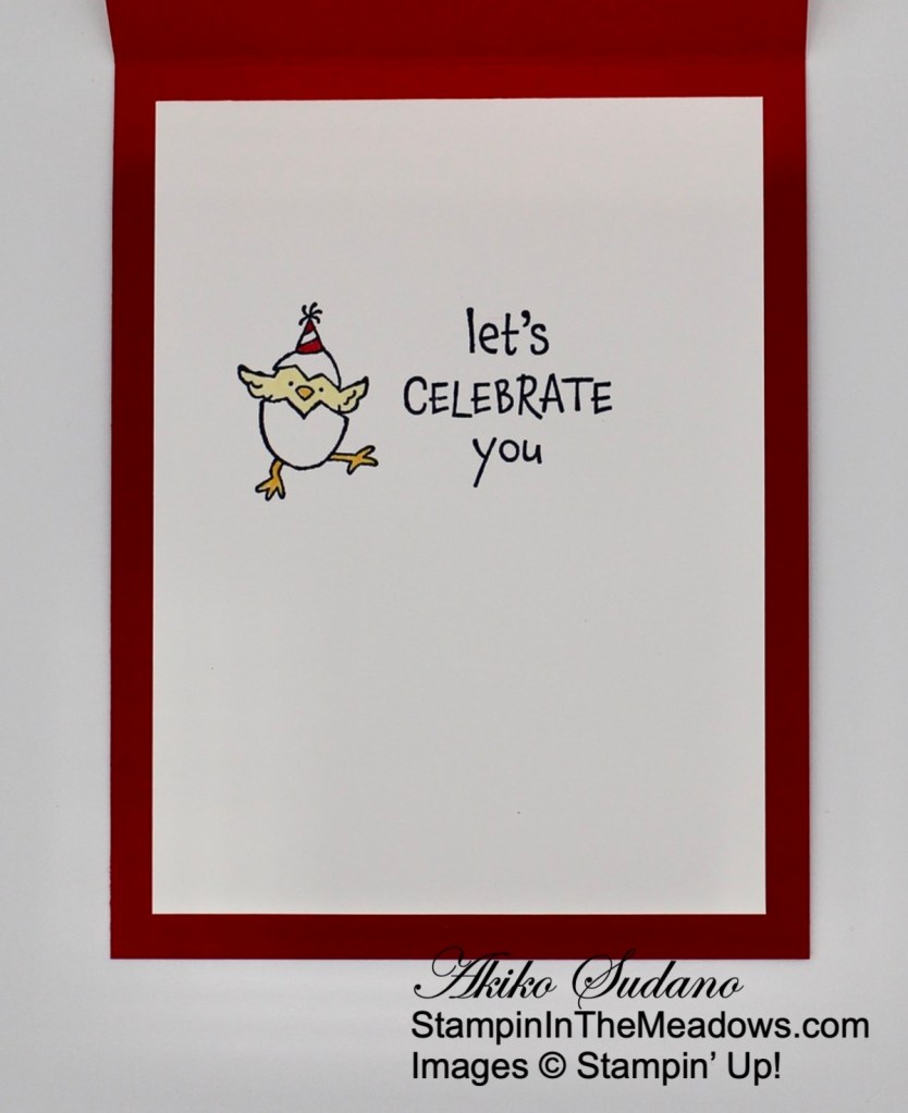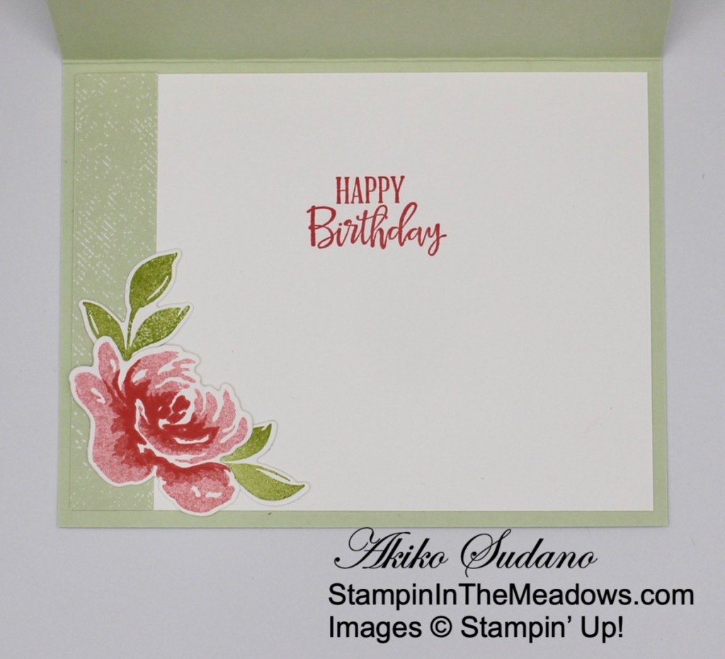 For the inside, I stamped the sentiment from the Stampin’ Up! Pansy Patch stamp set in Evening Evergreen on a Basic White panel. I cut out a small pansy from the Pansy Patch DSP and adhered it to the corner and adhered the panel to a Calypso Coral mat. I adhered the panel to the inside of the card with liquid glue, lining it up so that it would be covered by the front panel.