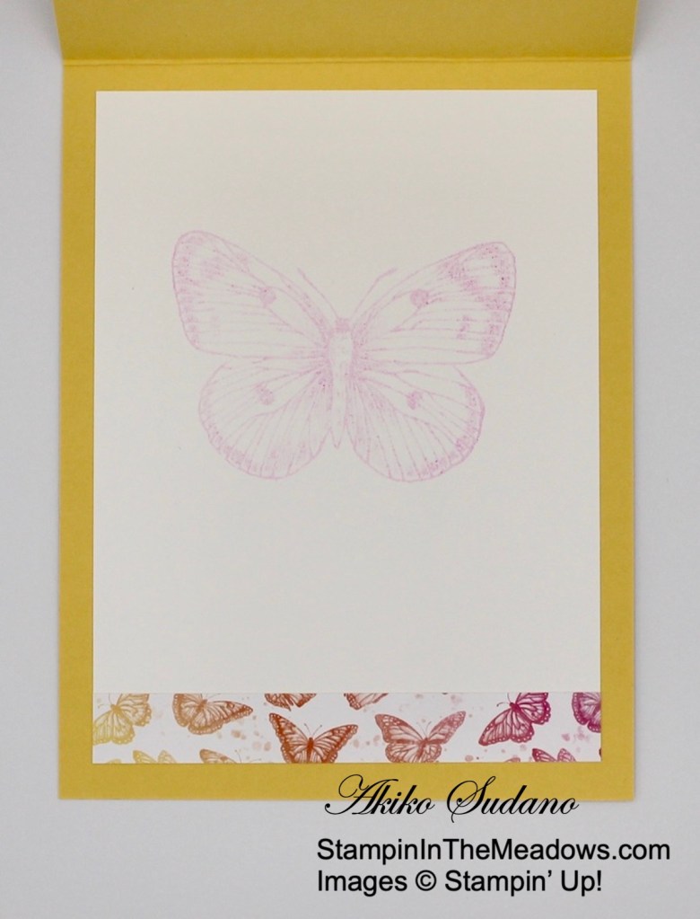 For the inside of the card, I stamped the large outline flower three times in stamped off Polished Pink on the borders of a Basic White panel. I adhered the panel to the inside of the card.