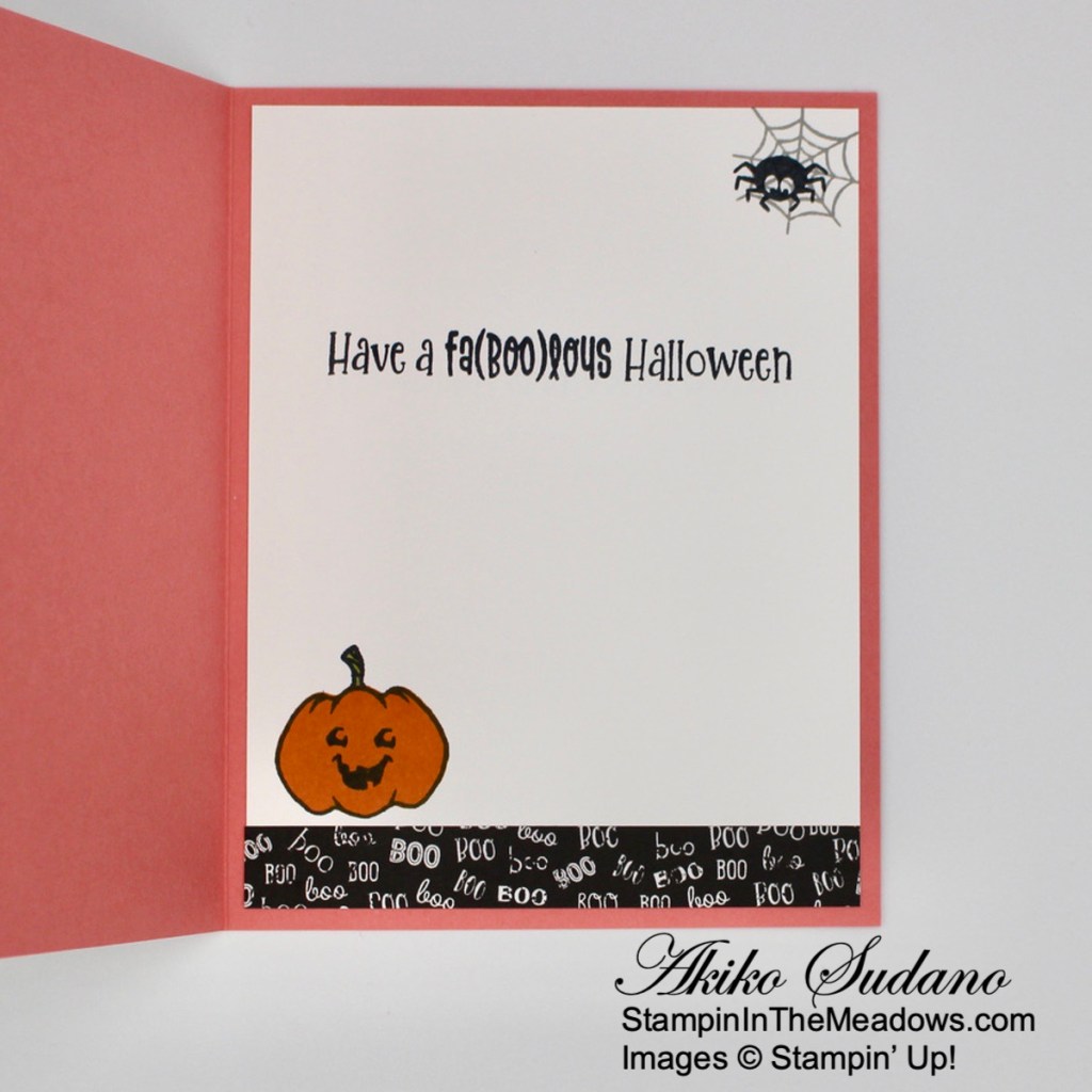 And the cute little ghosts from the Cute Halloween DSP – one is punched and one is fussy cut. Both sweet and so cute. And I used a blending brush with Pumpkin Pie ink to turn the black and white DSP to black and orange DSP.