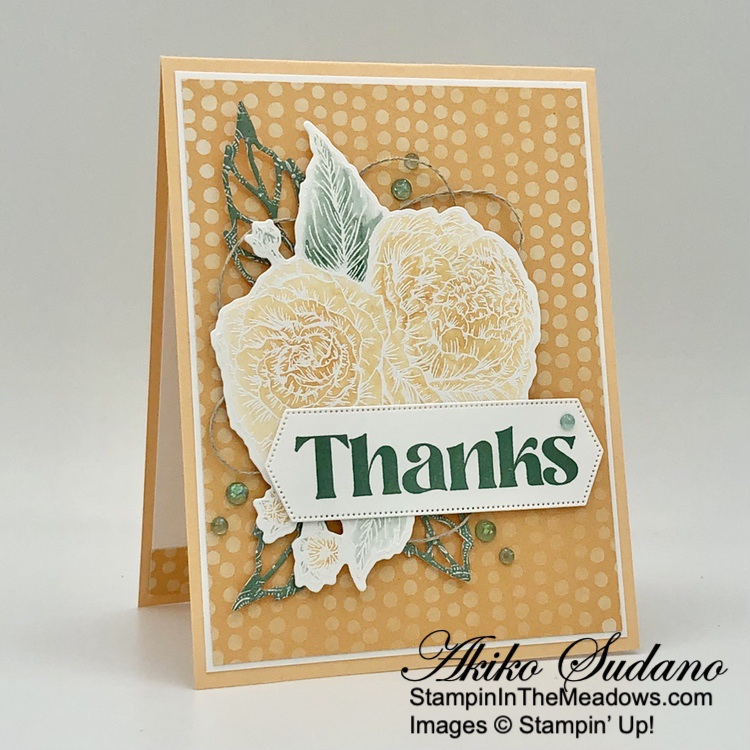 Good Morning! The Stampin’ Up! Happiness Abounds bundle is one of the prettiest line art floral stamp sets and dies ever. And the dies cut out several of the images in the beautiful Hues of Happiness designer series paper, so I cut some out for today’s card. You can find the supplies I used at the bottom of my post along with the sizes of cardstock used.