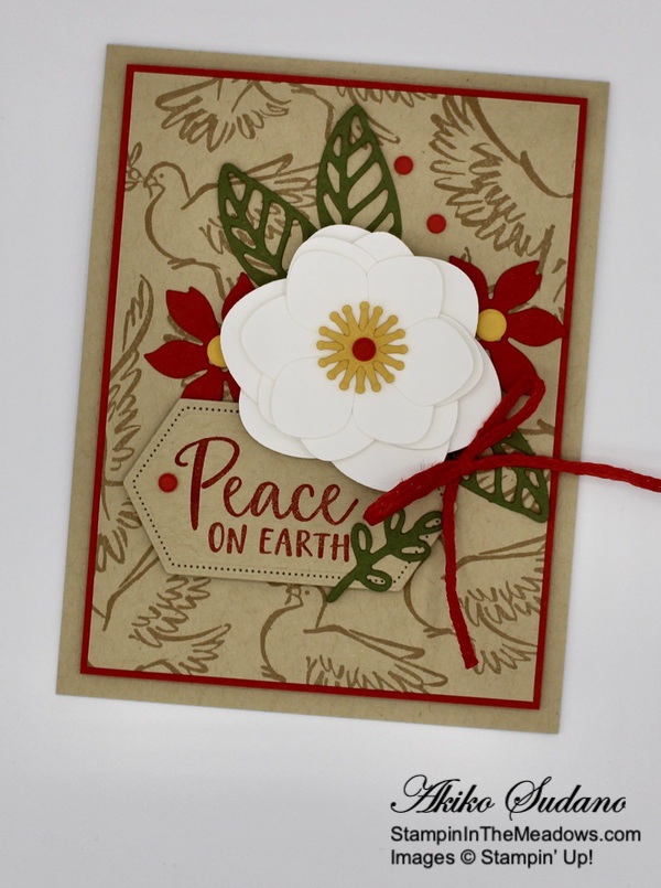 Good Morning! Today I’m sharing another Christmas card – a floral card made with the Stampin’ Up! Dove of Hope bundle that I made during my Facebook Live video tutorial yesterday afternoon. So you might think that the Dove of Hope cling stamp set isn’t a floral stamp set, but look closely and you will spot the doves. You can find the supplies used to create this card at the bottom of my post along with the sizes of cardstock used.