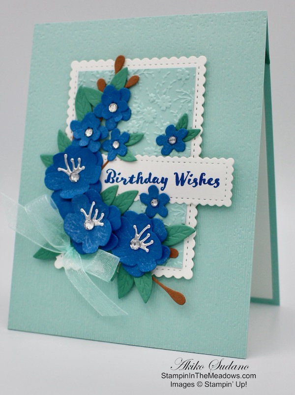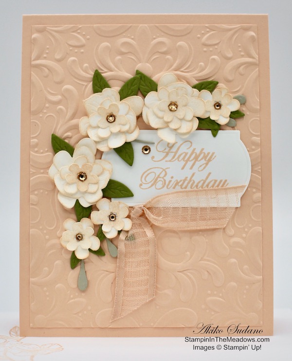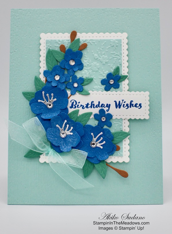 I love the layered flowers created by the Stampin’ Up! Cherry Blossoms dies – they are so dimensionals and make very special birthday cards!