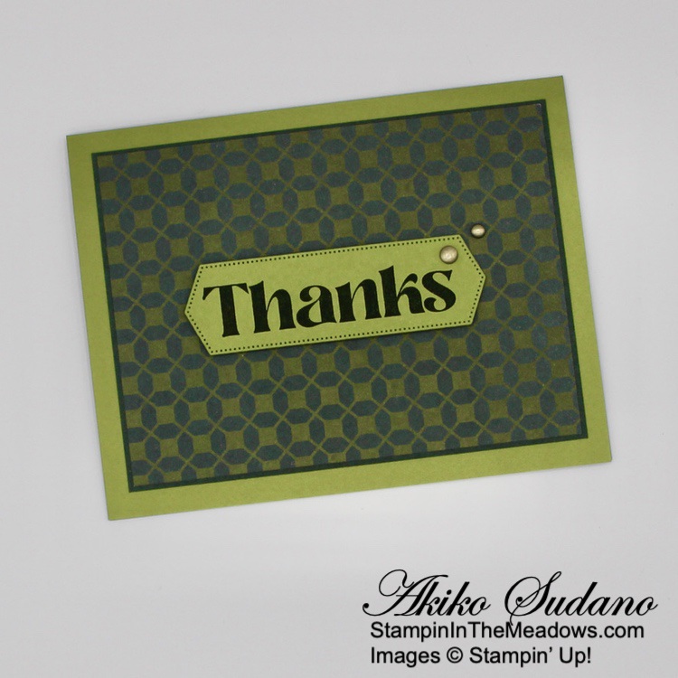 I stamped the pretty sentiment from the Stampin’ Up! Happiness Abounds stamp set in Memento Tuxedo Black ink and cut it out with a Stylish Shapes die. I adhered it to the front of the card with dimensionals and finished the card front with glossy dots.