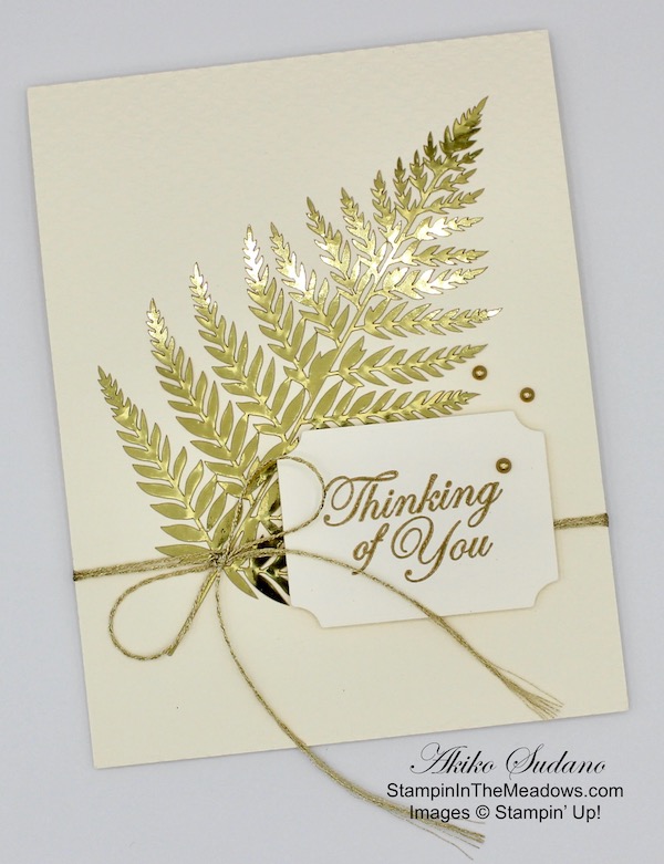 Good Morning! Today I have a simple and elegant thinking of you card made with the Stampin’ Up! Forever Gold specialty laser cut paper. You can find the supplies used to create this card at the bottom of my post along with the sizes of cardstock used.
