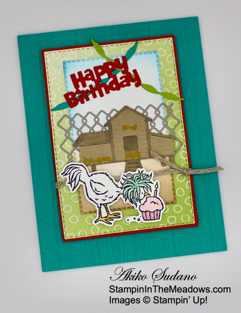 Isn’t the Stampin’ Up! Hey Chick bundle so cute? The Chick dies are so detailed and make wonderful little farm scenes! The hens are cute too and the sentiments are simple and perfect. So hurry so you can get yours while it’s still available! On another note, the Hey Birthday Chick cling stamp set and coordinating Birthday Chick dies will still be available next month, the bundle pricing with the 10% discount will also end on June 30.