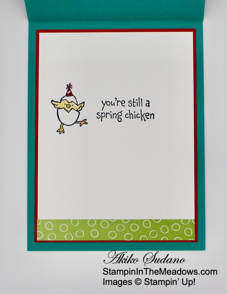 Good Morning! The Stampin’ Up! Hey Chick is a cute cling stamp set that came out for a short time a couple of years ago. And it was brought back this spring as a bundle with the cutest set of coordinating dies! But it will only be available until the end of this month, so I wanted to make a card with it before it’s gone. You can find the supplies I used at the bottom of my post along with the sizes of cardstock used.