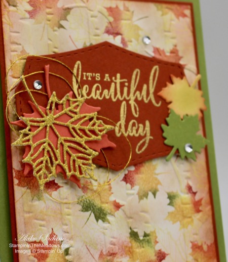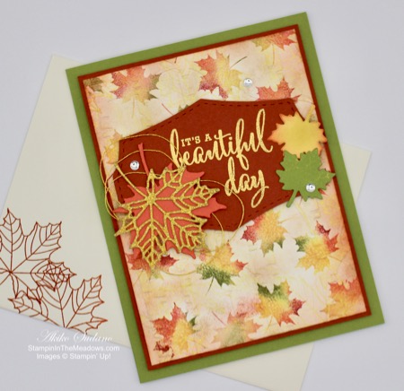 - Old Olive – 4″ x 5-1/4″ (front mat), 1-1/2″ x 1-1/2″ (leaf cluster), 2-3/4″ x 4″ (label), 1/2″ x 5-1/8″ (die cut border)