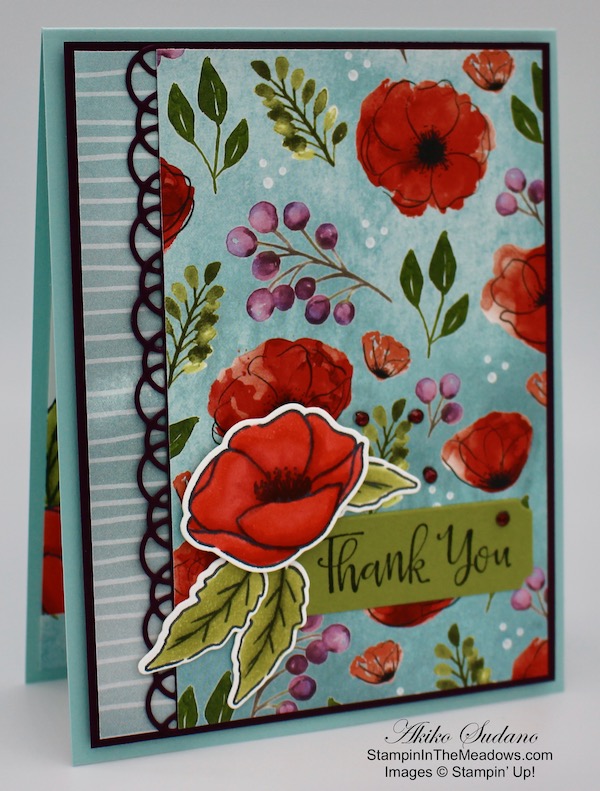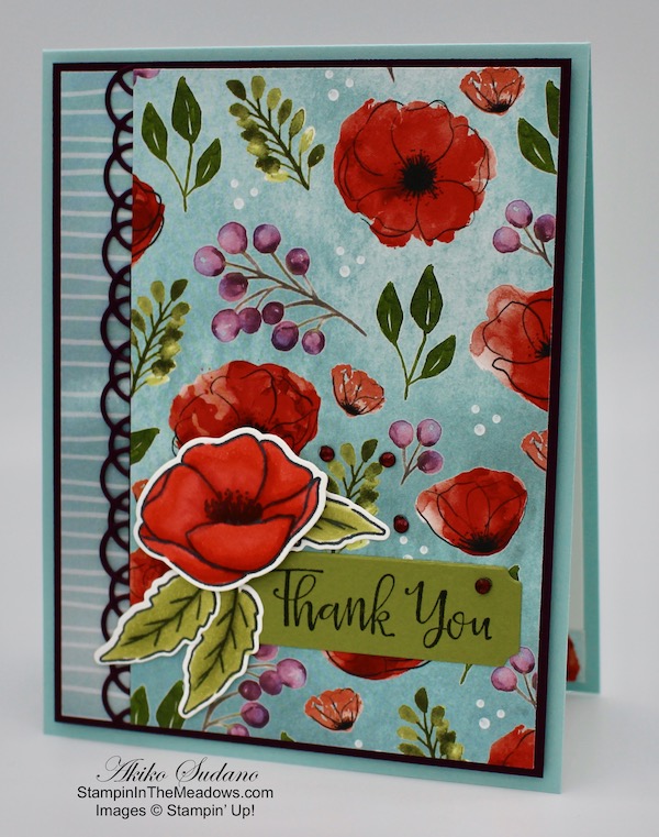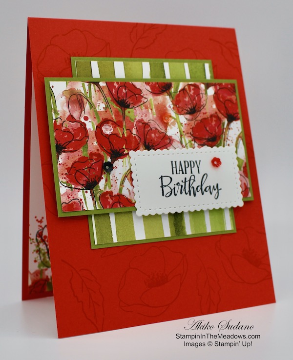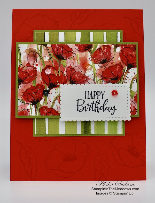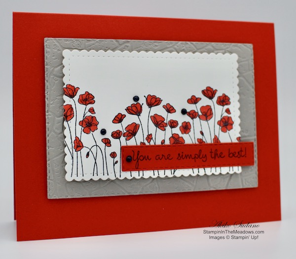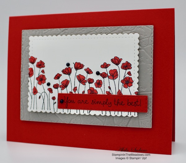 Good Morning! I was so glad when I saw the beautiful Stampin’ Up! Painted Poppies cling stamp set and the coordinating dies because they are such a striking flower, coming in so many colors these days. And I always think of Poppies on Memorial Day because of my childhood, growing up as an Air Force brat, frequently living on base. So I had to bring out these stamps for a Memorial Day card. You can find the supplies I used at the bottom of my post along with the sizes of cardstock used.