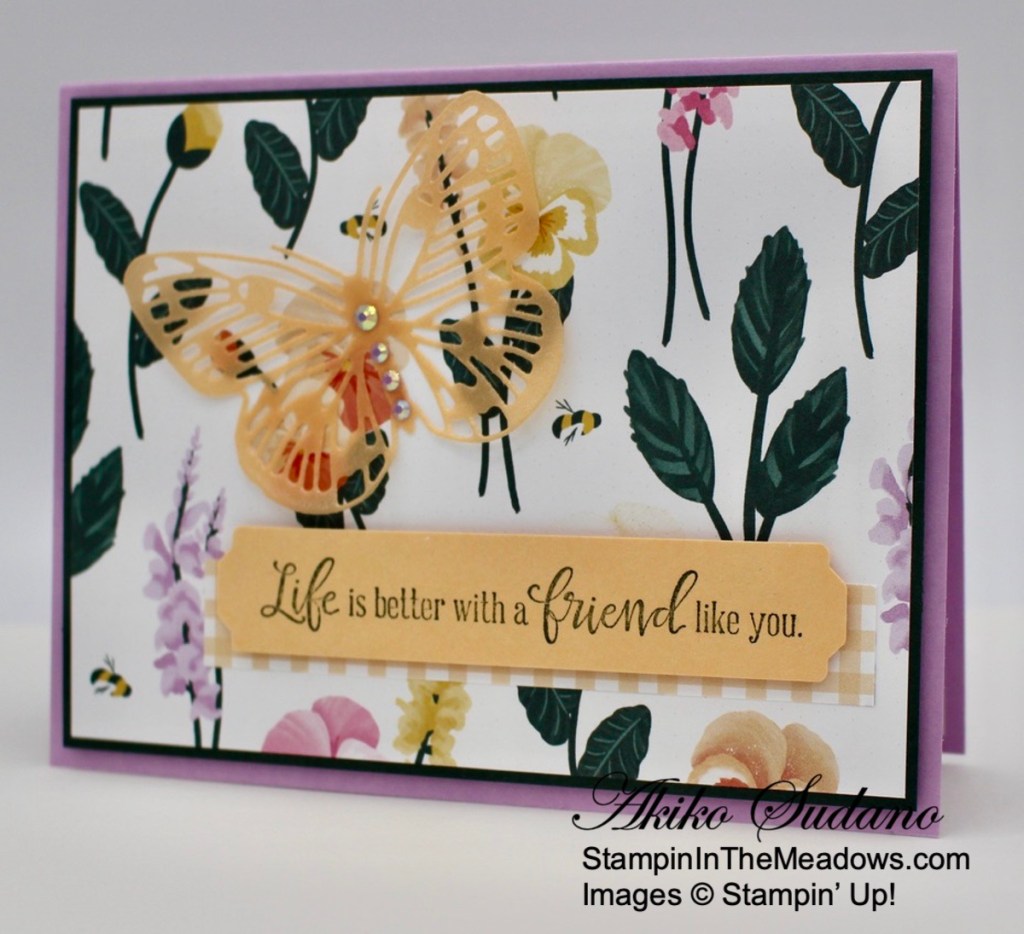The Stampin’ Up! Pansy Patch bundle is so sweet and I’m so glad that it’s sticking around. And while the Pansy Petals DSP is retiring, the good news is that it is on sale, so get it before it’s gone!