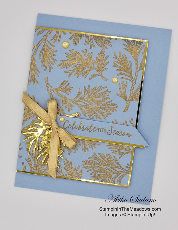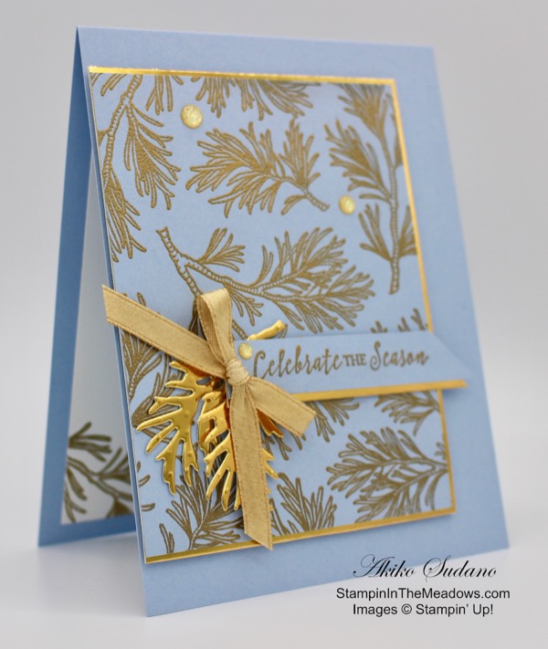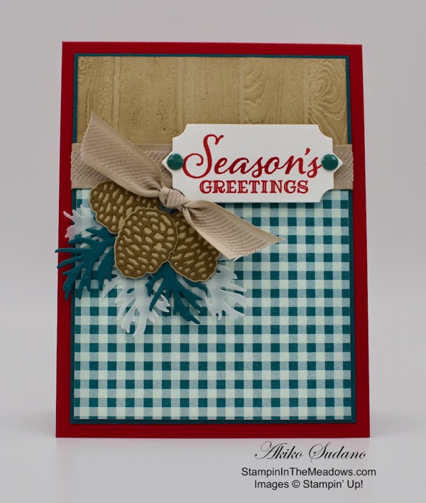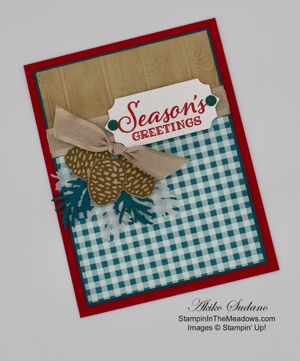 I thought the Christmastime Is Here pinecone paper would coordinate nicely with the Stampin’ Up! Peaceful Boughs bundle. What do you think?
