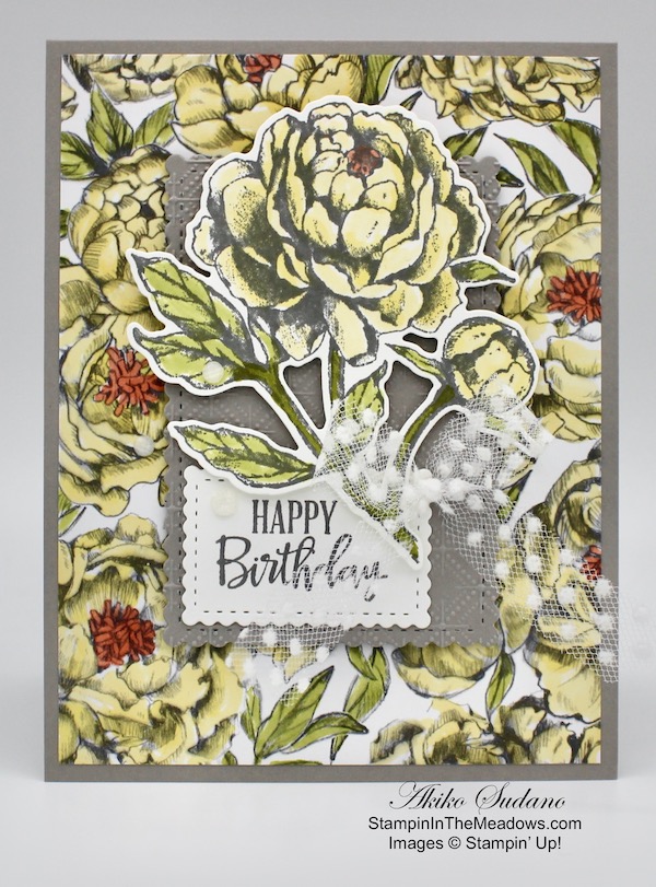 Good Morning! The retiring Stampin’ Up! Peaceful Moments cling stamp set has been one of the most versatile sentiment stamp sets for a while. It’s great for lots of occasions and uses some pretty fonts. It also coordinates well with the retiring Painted Labels dies, so I paired them with the roses in the Ready to Ride specialty designer series paper for a birthday card. You can find the supplies I used at the bottom of my post along with the sizes of cardstock used.