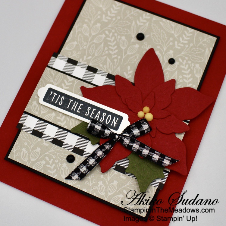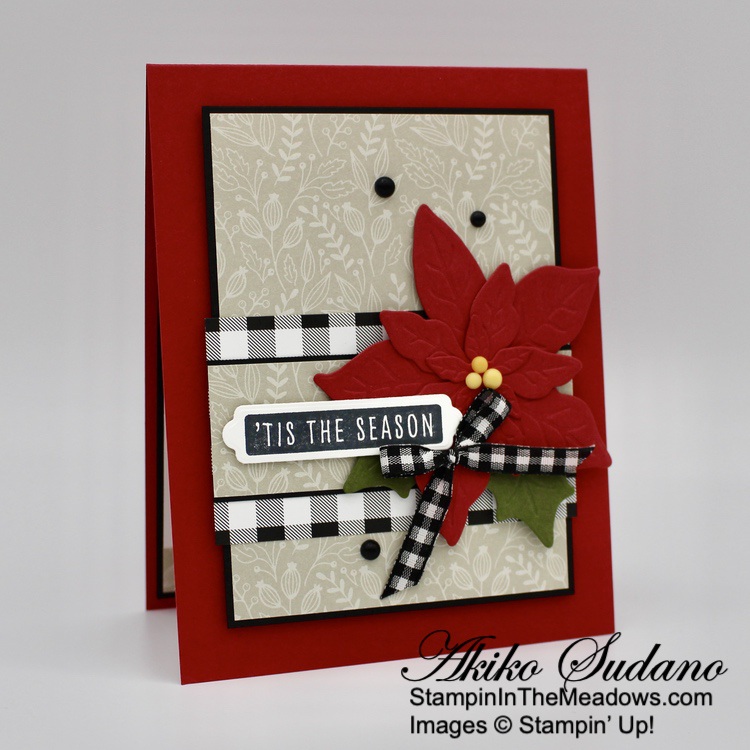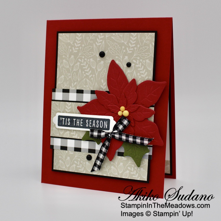 I love the rustic feel that the Sahara Sand and black and white gingham give this card! Reminds me of handmade Christmas ornaments and popcorn garland on a Christmas tree. And I love the flowers that the Stampin’ Up! Poinsettia dies make – they are the best ever!! But let’s have fun with Halloween first!