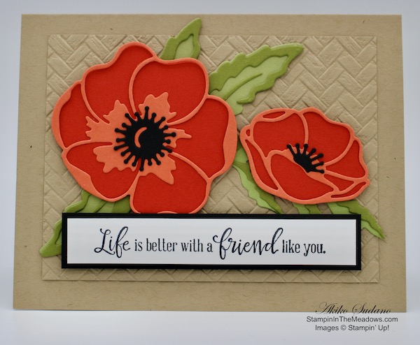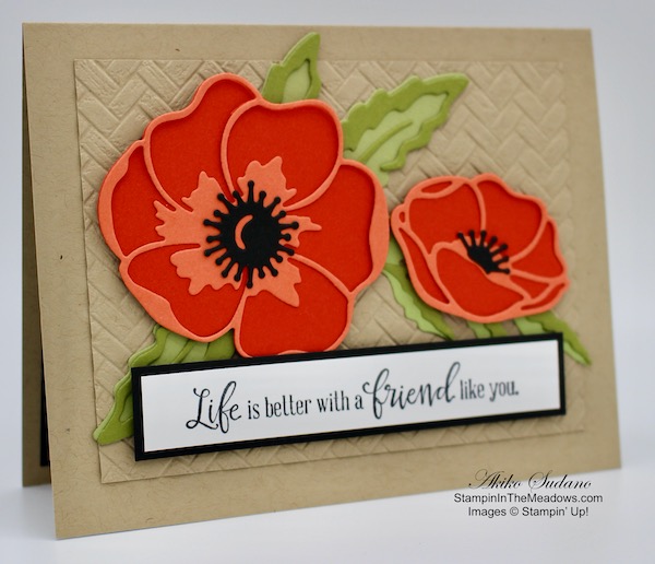 The die cut poppies from the Stampin’ Up! Peaceful Moments bundle are so beautiful that I think you can to use them at any time of the year!