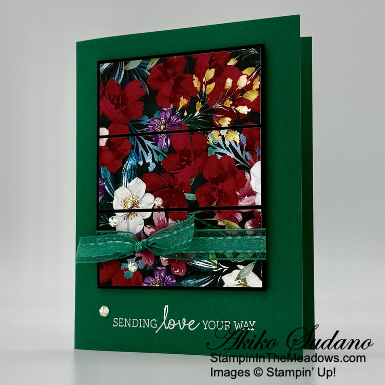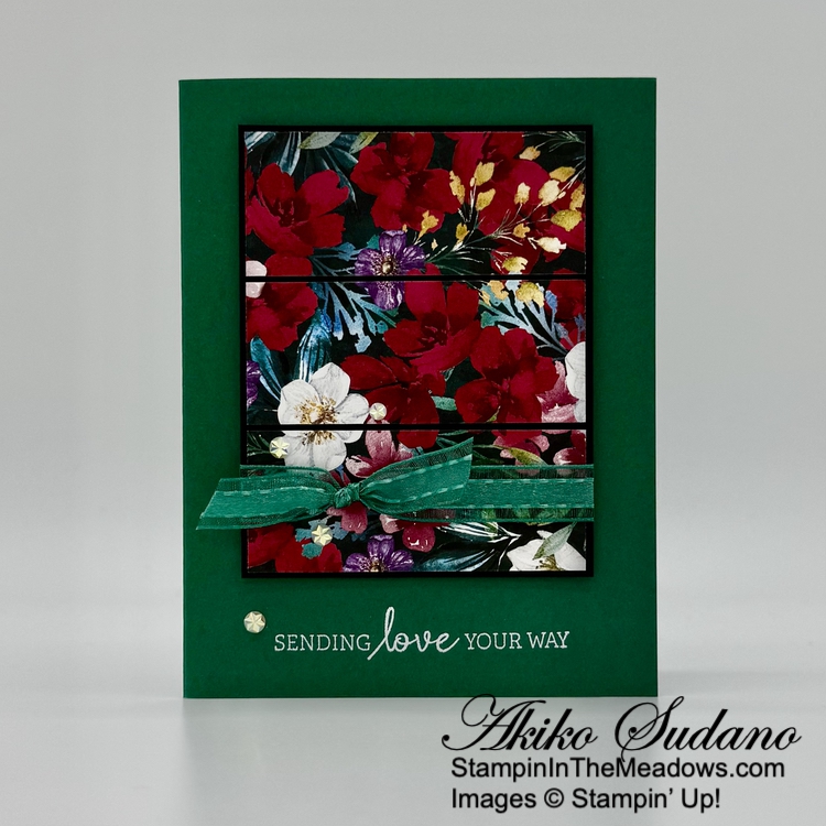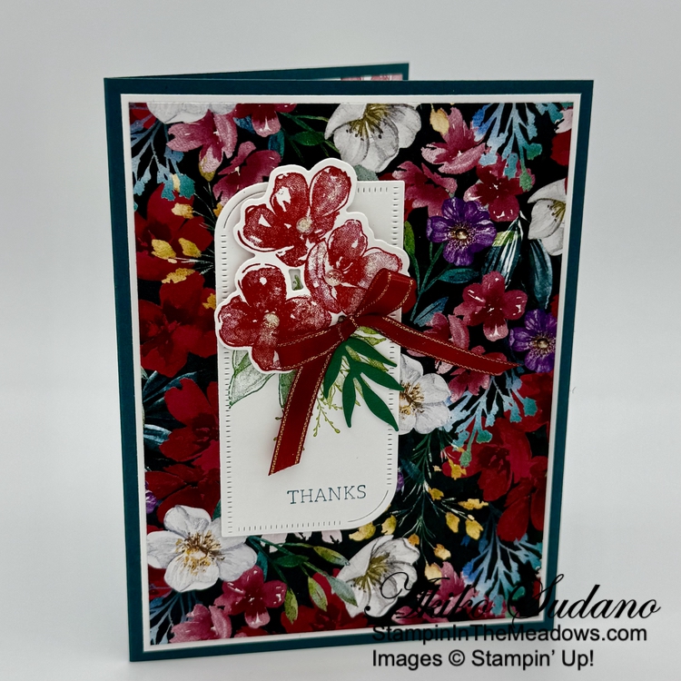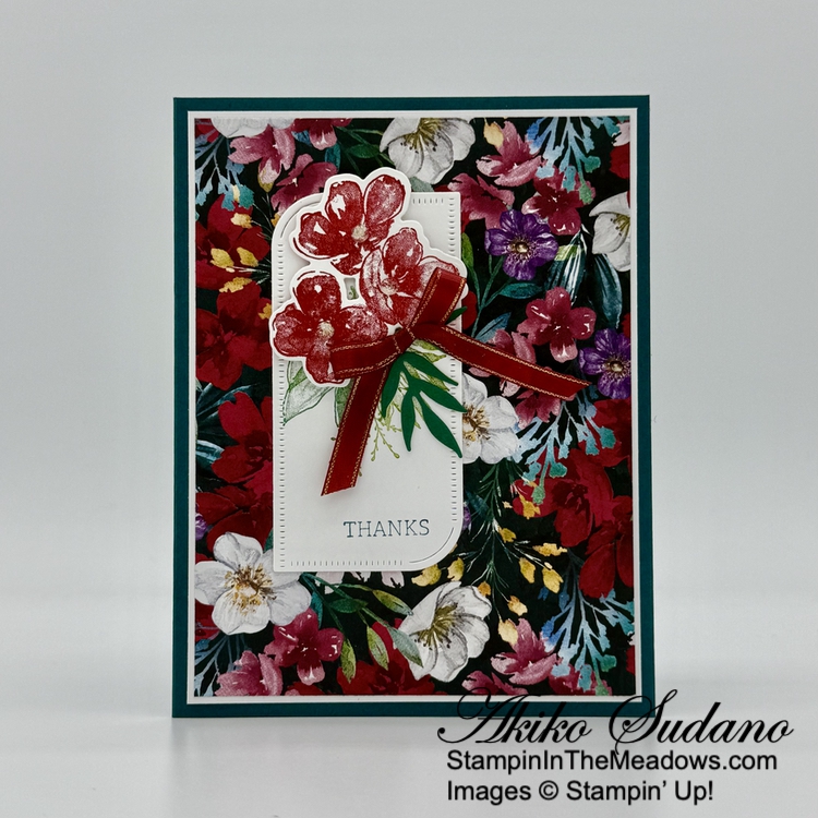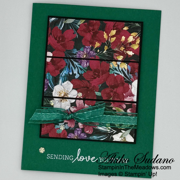 I made a Blackberry Bliss bow and adhered it to the top right and finished with three Blackberry Bliss foil gems.