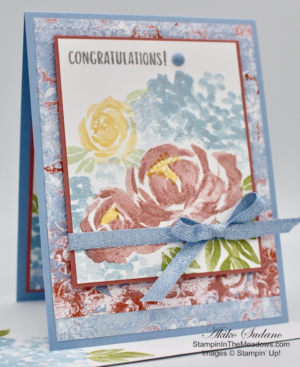 The Stampin’ Up! Sending You Thoughts stamp set is a Sale-A-Bration stamp set that is FREE with a $50 order and it has a great selection of sentiments in a great font. The Sending Flowers dies are part of the new Coordination Product Release. Both of these products are available now while supplies last.