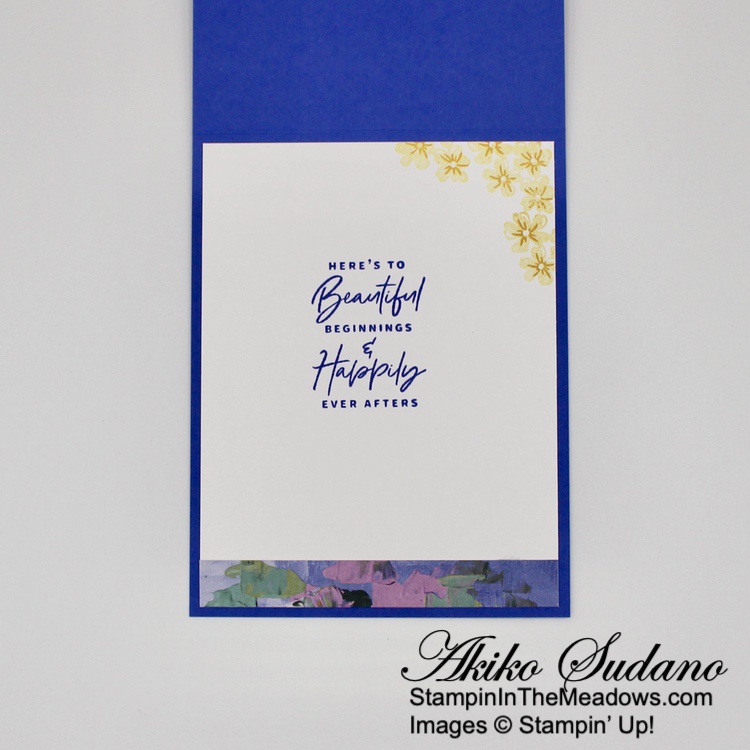For the inside of the card, I stamped the sentiment from the So Sincere stamp set in Pecan Pie ink on Very Vanilla. I stamped the small ducks from the Stampin’ Up! Feathered Flight stamp set next to the sentiment and the pond in the lower corner. I adhered the panel to a PEcan Pie mat before adhering it to the inside of the card with Stampin’ Seal.
