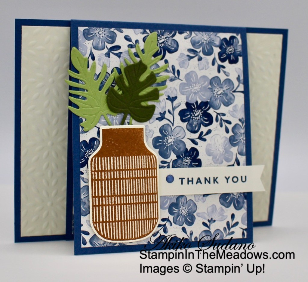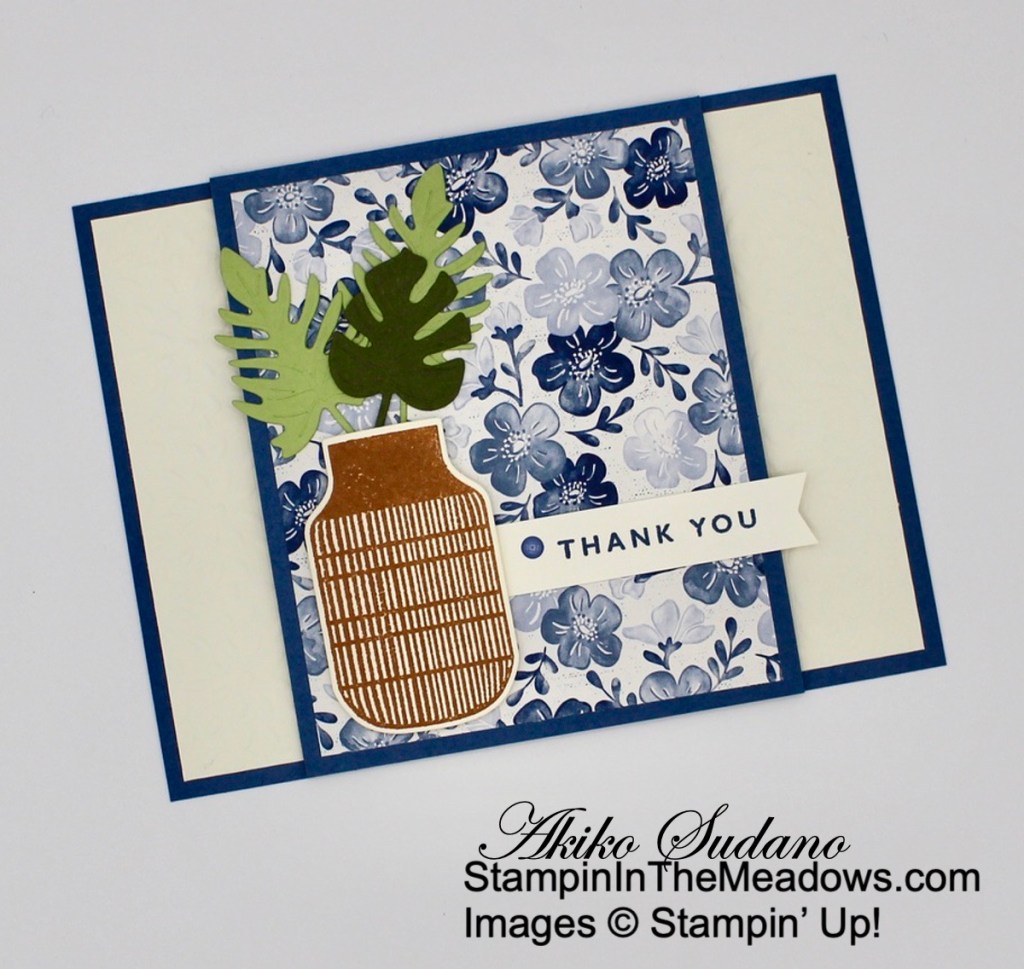 Good Morning! Today I have a fun fold thank you card made with the pretty Stampin’ Up! Boho Indigo Product Medley. You can find the supplies at the bottom of my post along with the sizes of cardstock used.