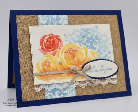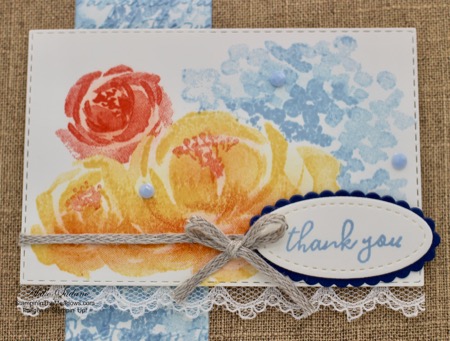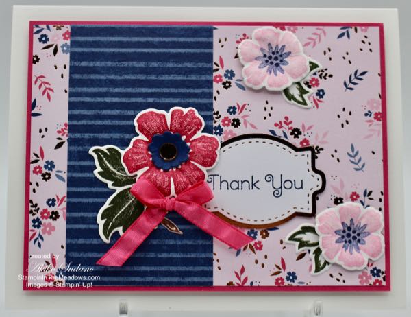 Good Morning! Today I am sharing a video tutorial that I made yesterday during my Sunday Facebook Live session. I made a Thank You Card with the pretty Stampin’ Up! Peaceful Moments and Painted Poppies bundles. You can find the supplies used to create this card at the bottom of my post along with the sizes of cardstock used. Here is my card: