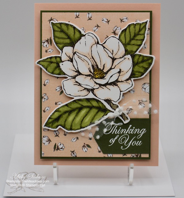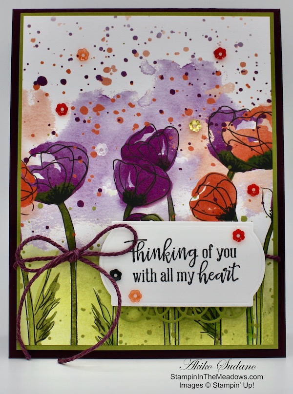 Good Morning! April Showers Bring May Flowers! I have been saying this every year since I was a child. We had some rain last weekend and it’s still cool here in Pennsylvania, so I’m grateful it wasn’t snow. But daffodils are blooming and soon the tulips will be as well, so it’s time for tulip cards. I used the beautiful Stampin’ Up! Flowering Tulips bundle for a thinking of you card in my Facebook Live yesterday afternoon to make this card. You can find the supplies I used in my video at the bottom of my post along with the sizes of cardstock used.