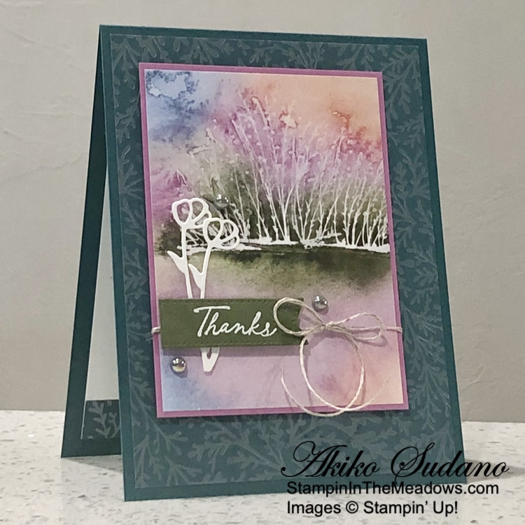 The pretty Stampin’ Up! Thoughtful Wishes bundle and Thoughtful Journey DSP are from the current Annual Catalog. These are some of my favorites and it’s nice to use them again. And I love how the Fault Line technique shows the pretty wildflowers peeking through the textured frame!