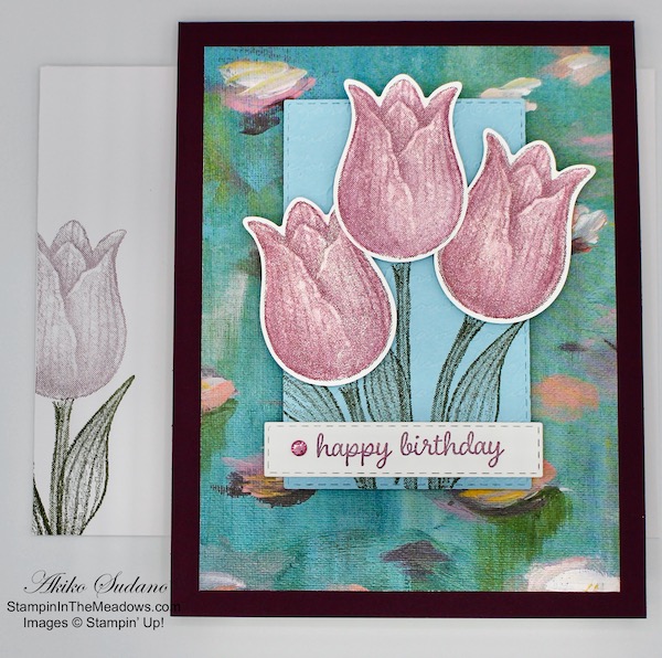 The sentiments from the retiring Timeless Tulips stamp set are so sweet and pretty and the retiring Stitched So Sweetly dies are pretty as well. I have used them a lot, so check them out before they’re gone for good!