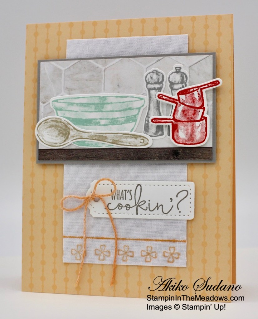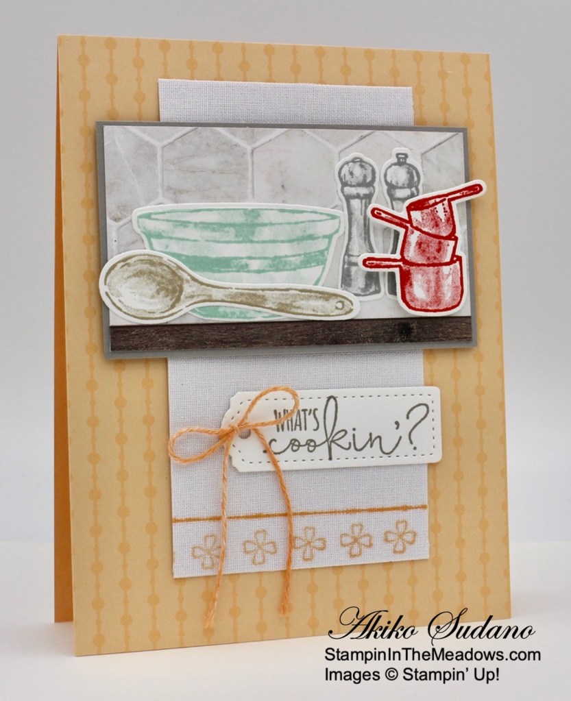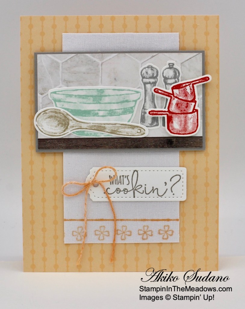 The Stampin’ Up What’s Cookin’ bundle is so wonderful and versatile! There are so many other food stamp sets that these items can be used with such as cupcakes and cookies. The bundle is perfect for cards for any kind of chef or food lover for any occasion.